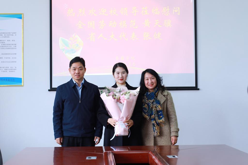 曾庆东强调,先进模范是学校的宝贵财富。学校将持续关心关爱优秀人才,大力弘扬劳模精神、劳动精神、工匠精神,积极营造“尊重先进、学习先进、争当先进”的浓厚氛围,切实将人才优势转化为推动学校高质量发展的强大动力。他勉励两位教师继续发挥示范引领作用,在教书育人、科研创新和服务地方中再立新功。